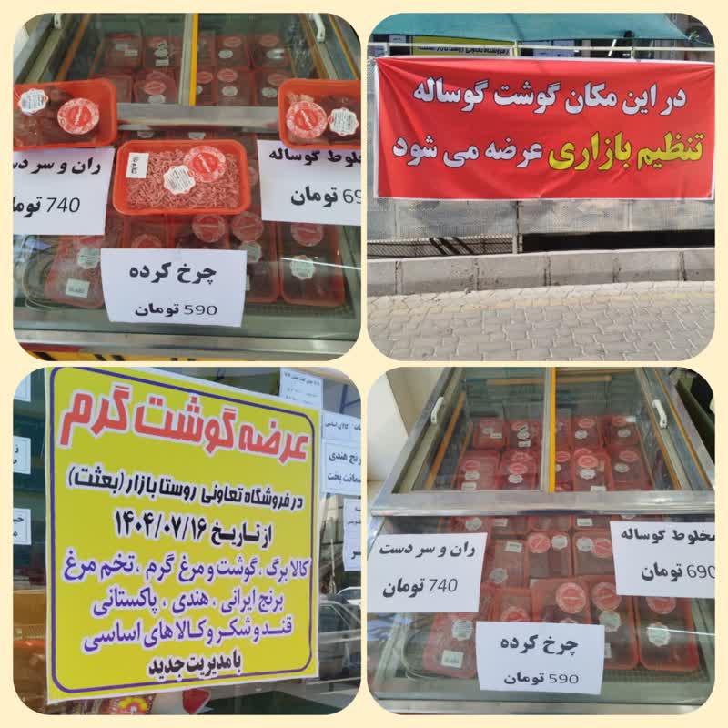 گوشت قرمز گرم با نرخ تعاونی در روستا بازار بعثت اتحادیه شرکتهای تعاونیهای روستایی شهرستان زنجان عرضه شد