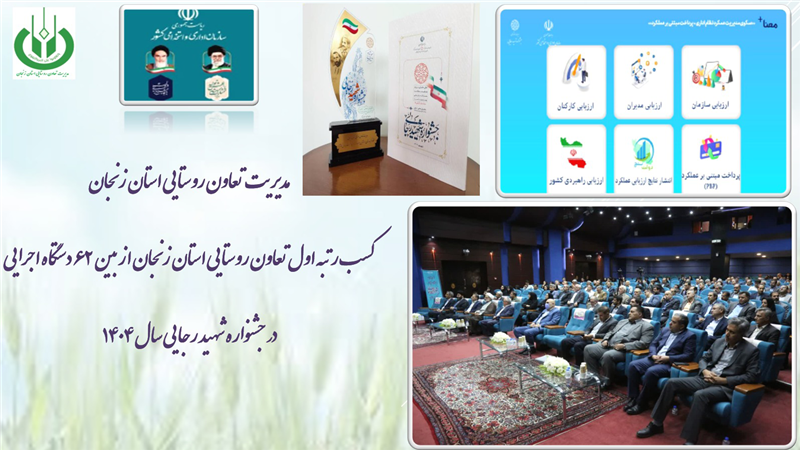 کسب رتبه اول در شاخص اختصاصی بین 62 دستگاه اجرایی توسط مدیریت تعاون روستایی استان زنجان در ارزیابی عملکرد ستاد جشنواره شهید رجایی سال 1404
