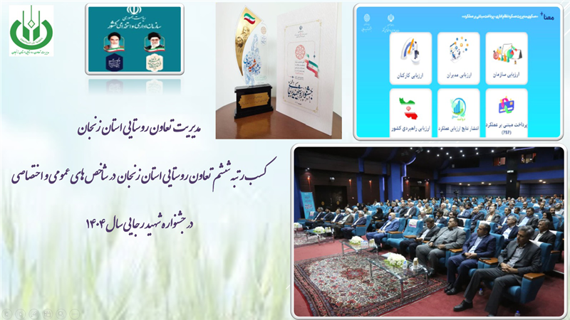 کسب رتبه ششم مدیریت تعاون روستایی استان زنجان در مجموع شاخص های عمومی و اختصاصی جشنواره شهید رجایی سال 1404
